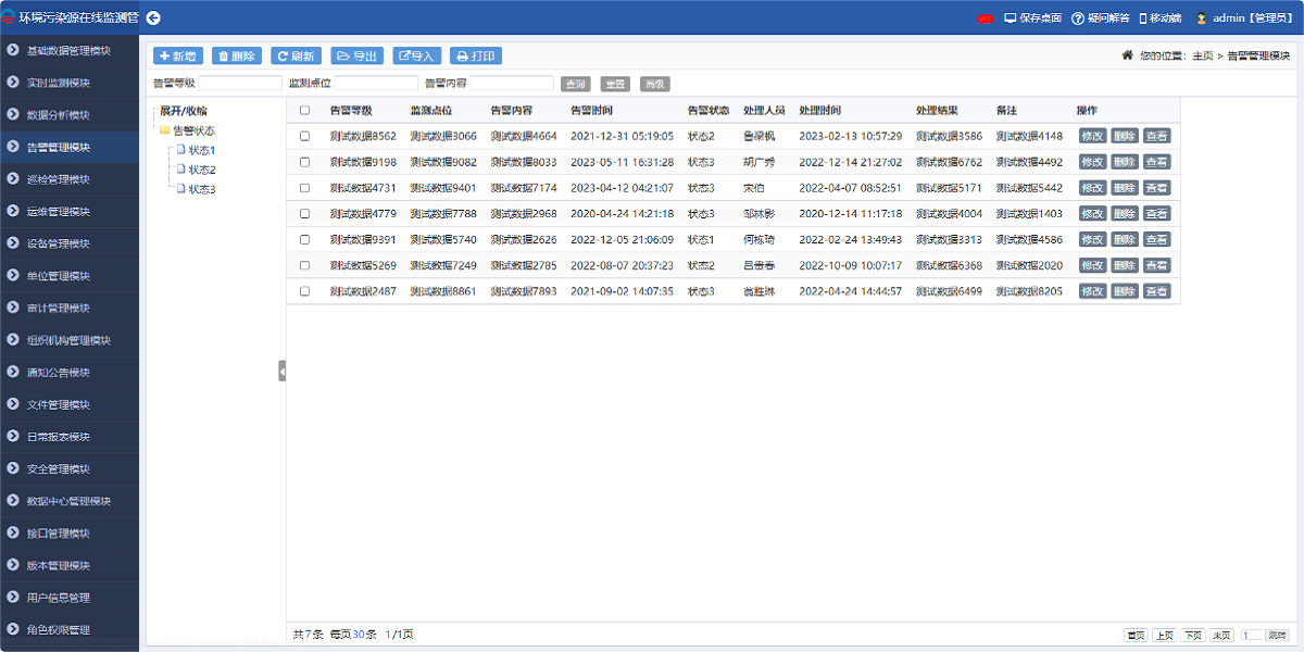 產品描述:環境污染源在線監測管系統是一款集數據采集、傳輸、處理、分析、儲存等功能于一體的智能化管理軟件。該系統通過實時監測設備對污染源的排放數據進行全程自動化、在線化、實時化管理,并提供有針對性的數據分析、可視化圖表展示、錯誤數據自動校驗、預警等功能。