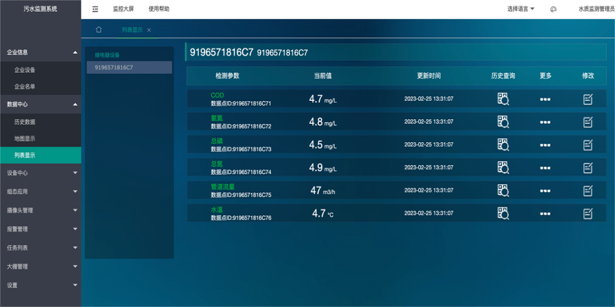 產品描述:智慧污水檢測系統軟件是一種集現代化信息技術于一體的先進軟件平臺,專為城市排水系統設計的智能監測解決方案。它基于AIoT智能物聯網、大數據、云計算等新一代信息技術,通過在排水管網、城區易澇點、排放口和排水泵站等關鍵位置布設智能監測設備,實現對排水系統重要節點的全方位動態監測。該軟件能夠完成包括水位、井蓋異動、流量、流速、水質等多項動態監測數據的采集工作。通過物聯網和自動化技術,軟件對排水泵站進行數據集成及運行監測,從而可以實時監管各個站點,遠程監控站點設備的運行狀況、水質處理情況等。